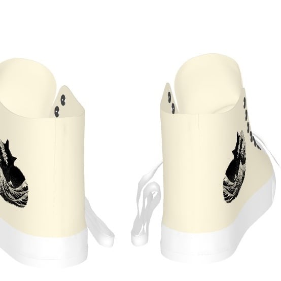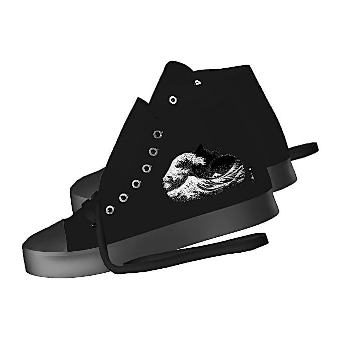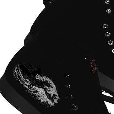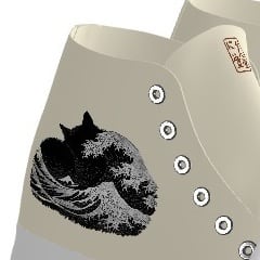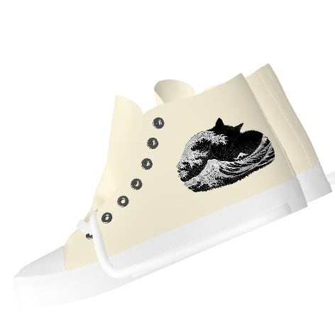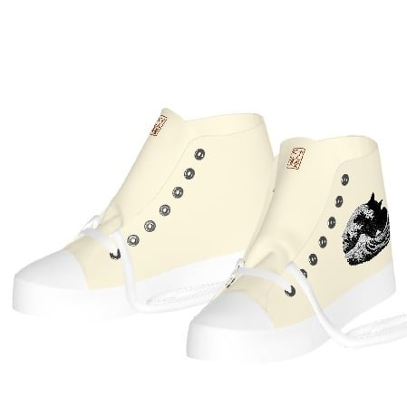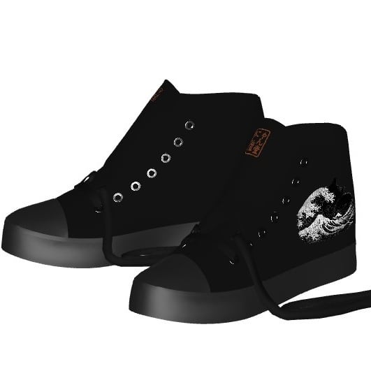 These playful art sneakers are based on the famous ukiyo-e print, "The Great Wave off Kanagawa." The chic monotone design is cool and unique. The inside also features the Nyan Rekido seal-style logo.