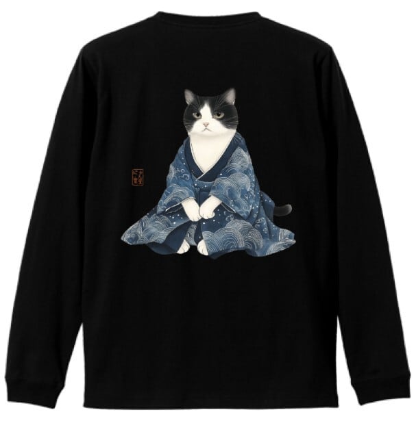 風格まとう白黒猫 / ロングTシャツ リブ付