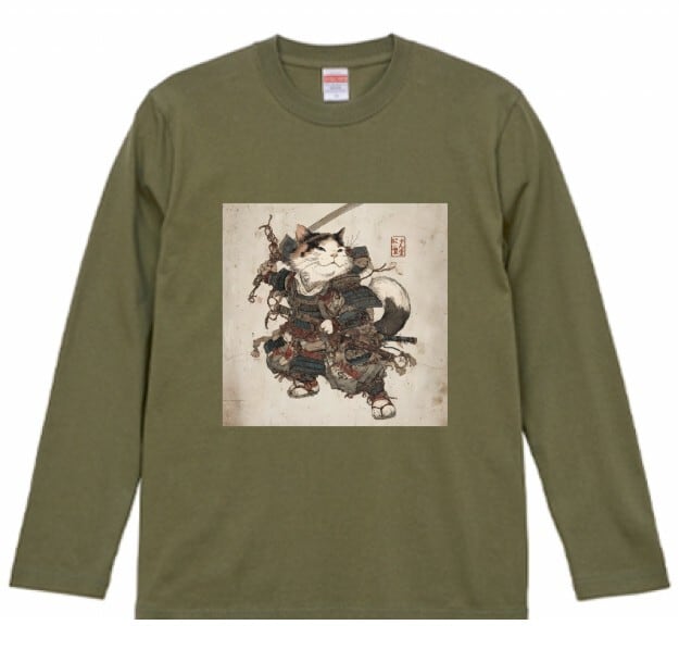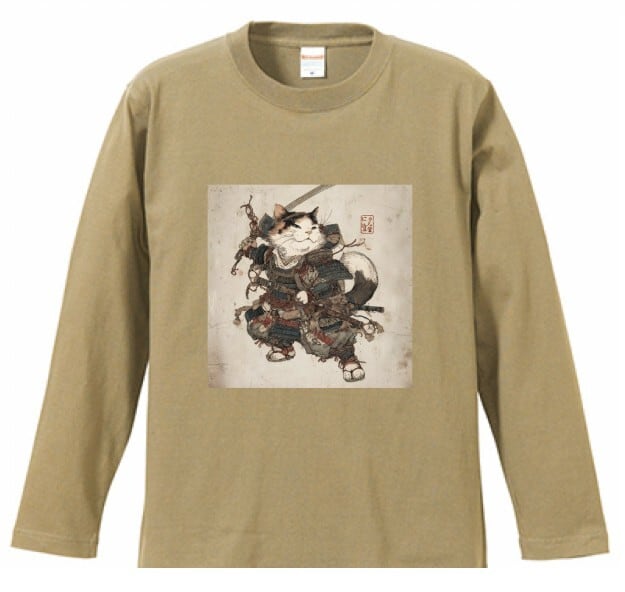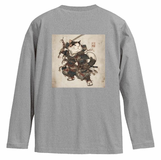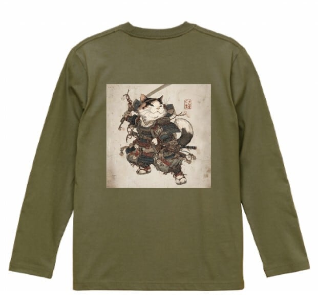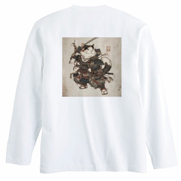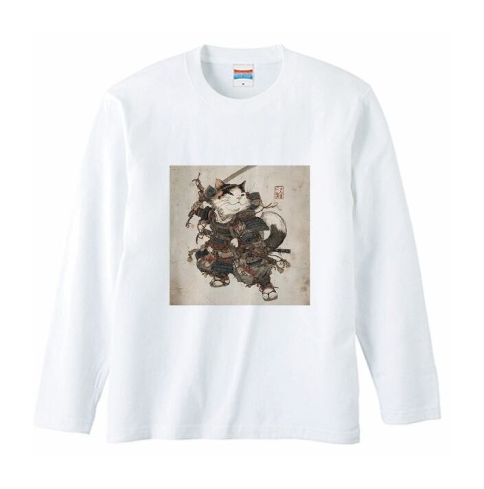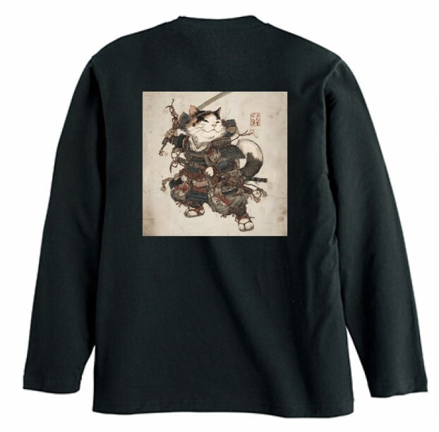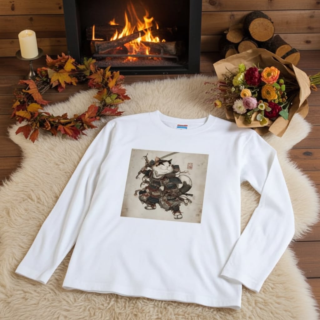 「戦場を駆ける、侍猫」 長袖Tシャツ / Samurai Cat Appears! Long Sleeve T-Shirt