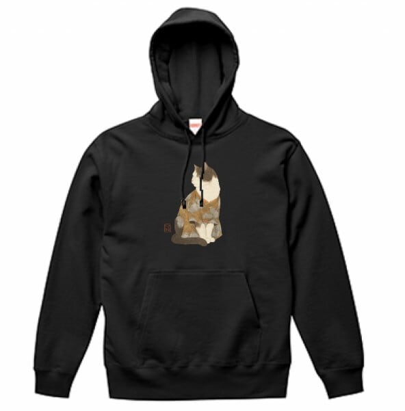 The beauty of an unexpected moment.A cat wrapped in a soft kimono, quietly turning around.A scene straight out of a storybook has come to life on the back of this hoodie.