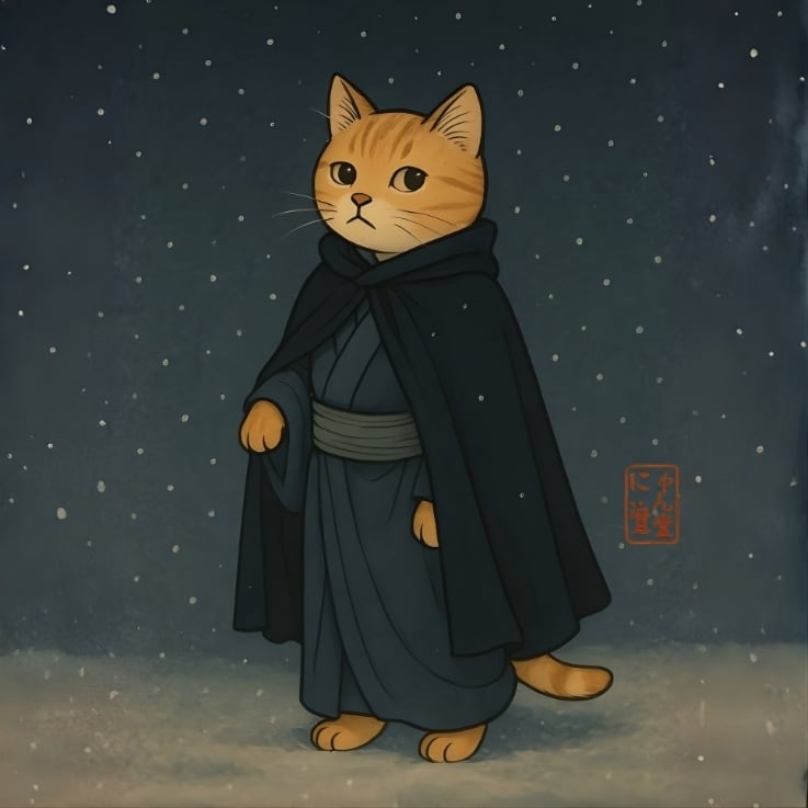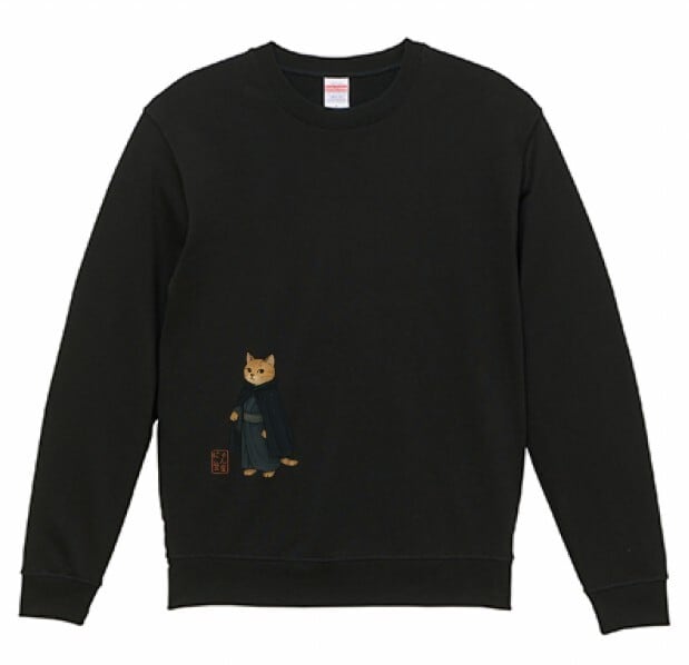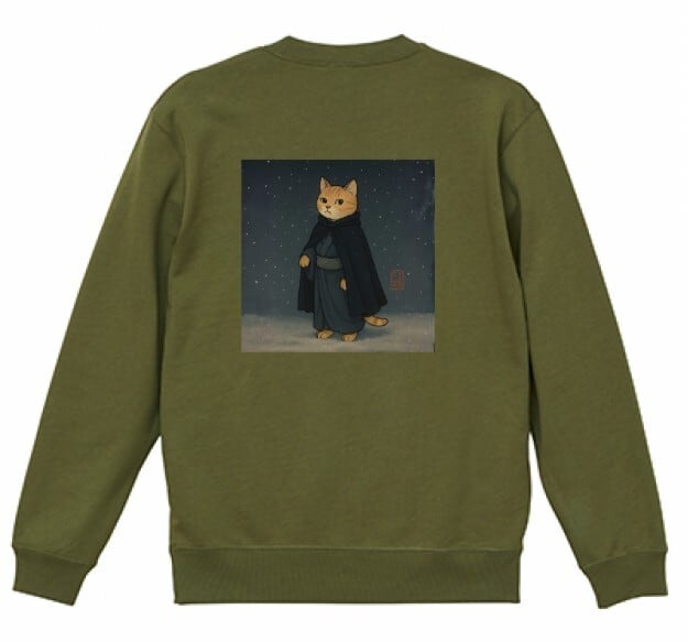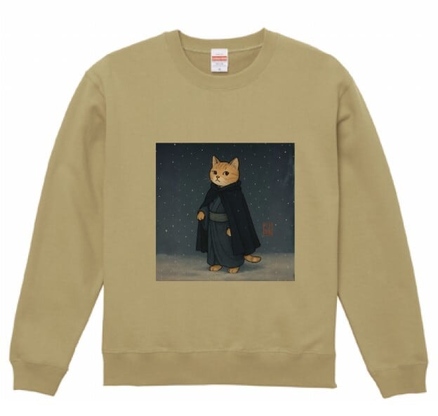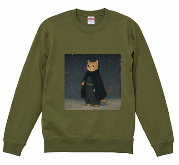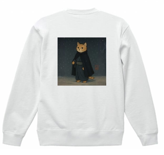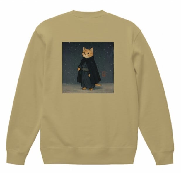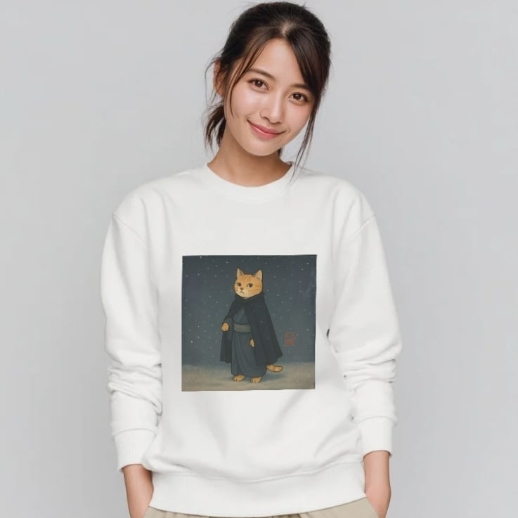 『雪夜の雅之助 ― 静寂に佇む猫』スウェット リブ付/"Masanosuke on a Snowy Night - A Cat Standing in Silence" Sweatshirt with Ribbed Detail