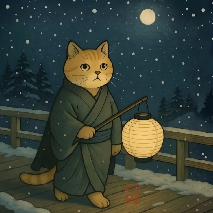 提灯の灯がそっと足元を照らし、静寂の中にぬくもりを宿す一枚。