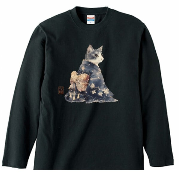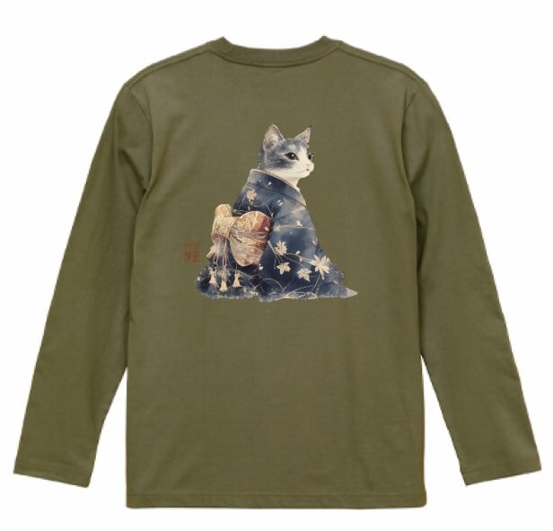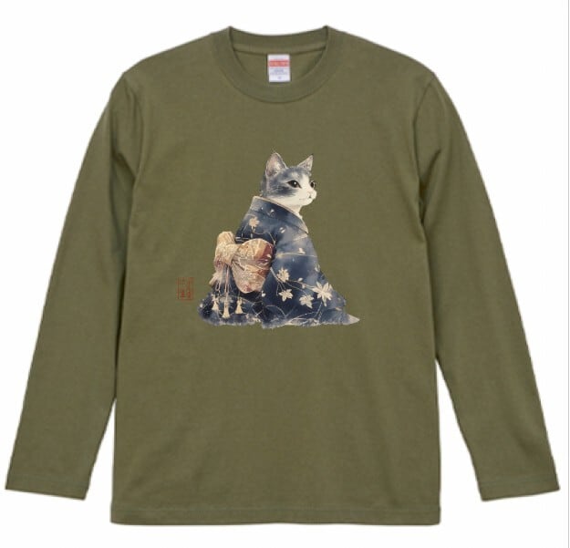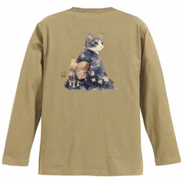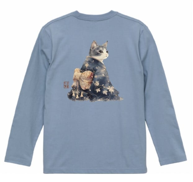 「雅猫のたたずまい ─ 藍染めの夕べ」 長袖Tシャツ / "The Elegant Cat's Appearance - An Evening of Indigo Dyeing" Long Sleeve T-Shirt