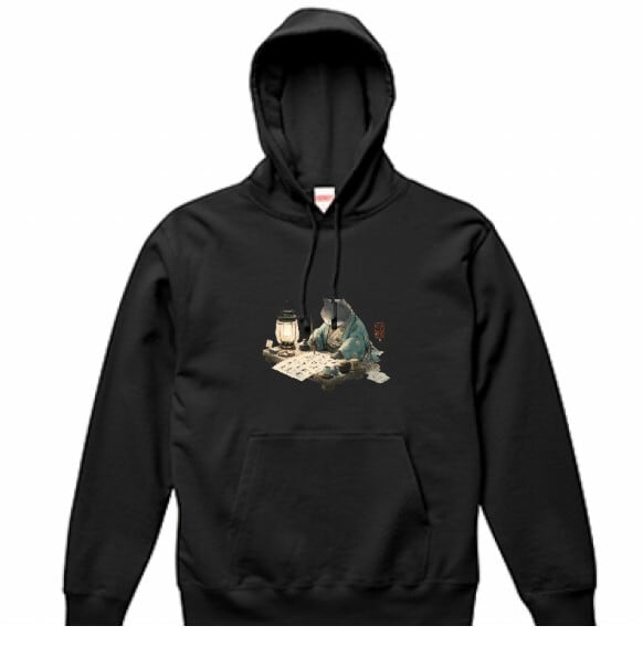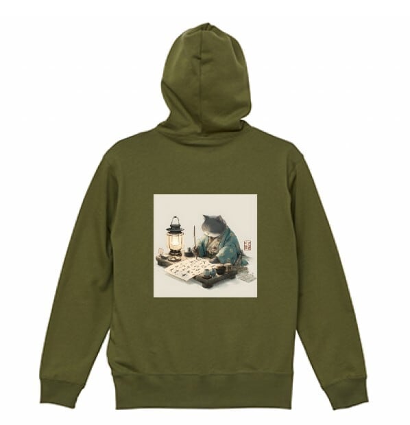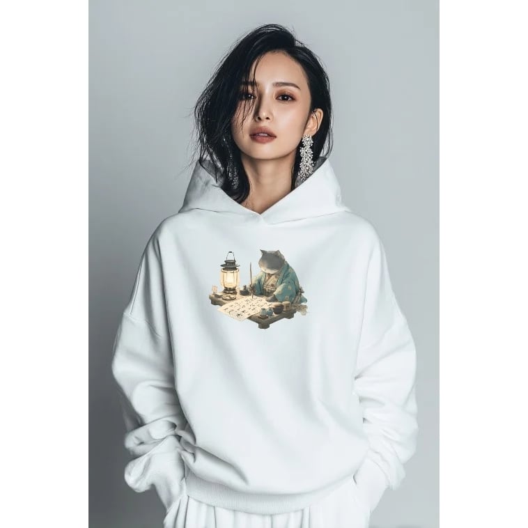 「文猫之図– 書をしたためる江戸猫」プルオーバーパーカー/""Picture of a Calligraphy Cat – Edo Cat Writing Calligraphy" pullover hoodie