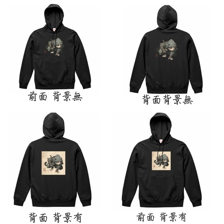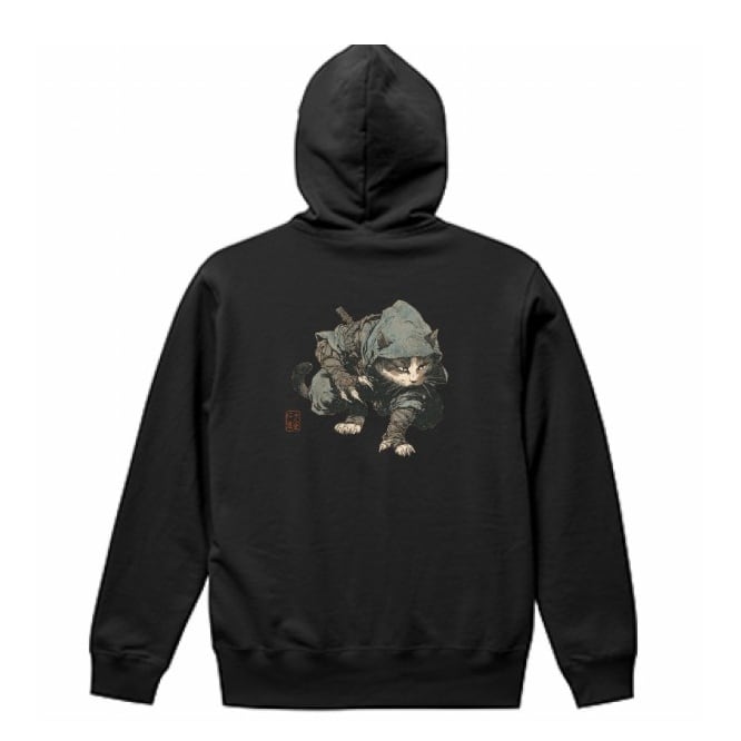 「忍び猫 ― 路地裏に舞う静けさ」プルオーバーパーカー/"Shinobi Neko - Tranquility Dancing in the Back Alleys" Pullover Hoodie