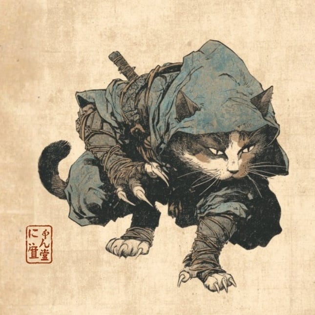 Hiding in silence, it runs through the darkness with a piercing gaze.Its appearance is that of a ninja cat, the epitome of "chic."One photo captures the atmosphere of Edo and the individuality of the street.