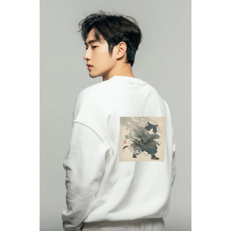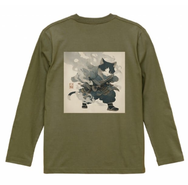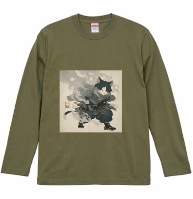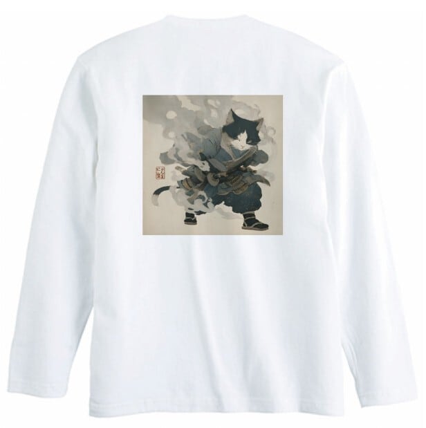 「煙隠れの江戸猫」 長袖Tシャツ / "Edo Cat of Smoke Hiding" Long Sleeve T-Shirt