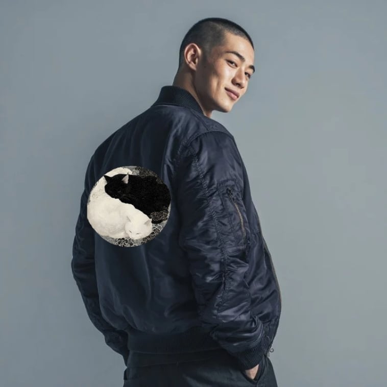 「陰陽の眠り ―白と黒の調和美 」MA1ジャケット(中綿入)/"Sleep of Yin and Yang - The Harmonious Beauty of Black and White"