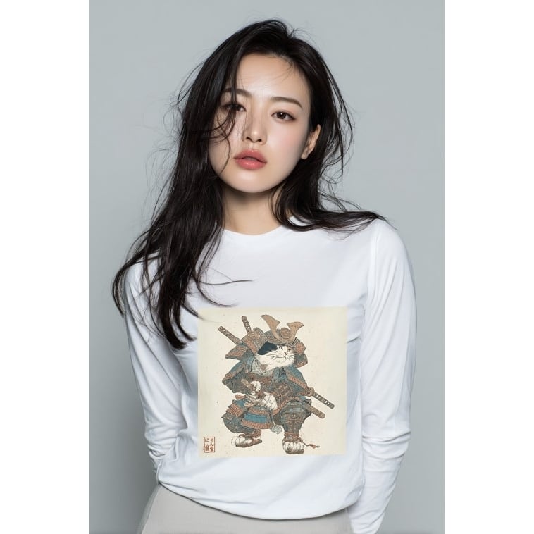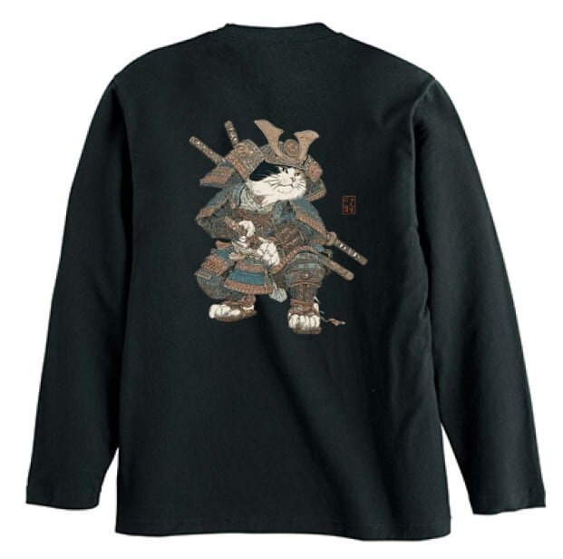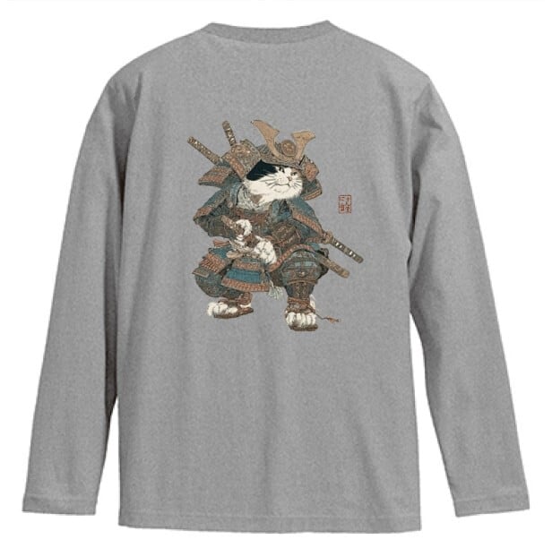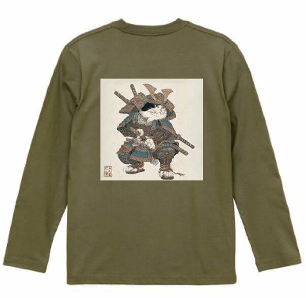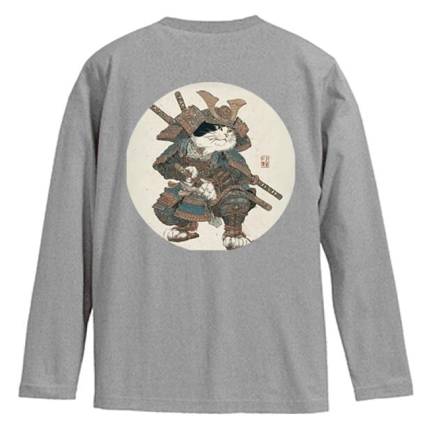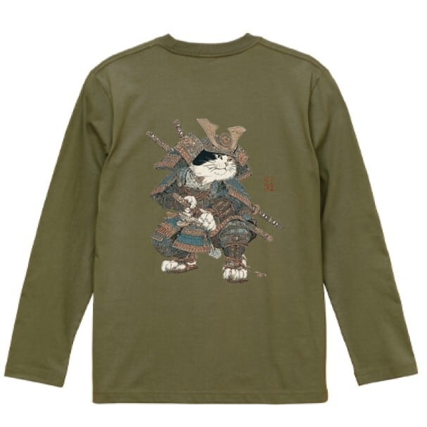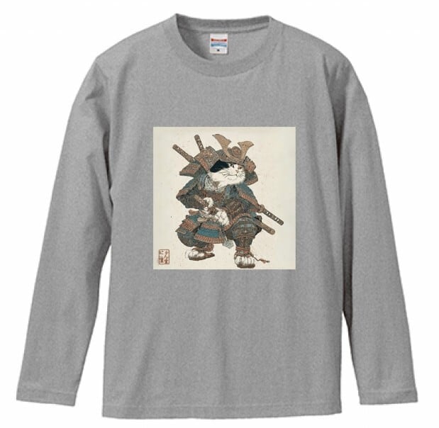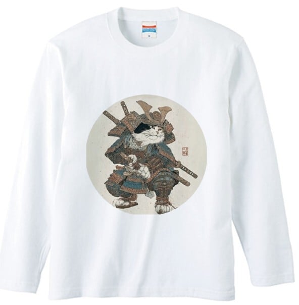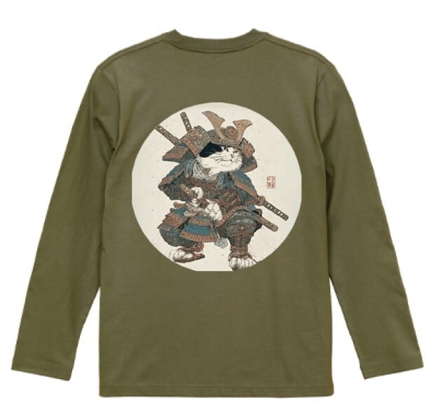 「最強の猫武将 アート 」 長袖Tシャツ / ""Strongest Cat Warrior Art" Long Sleeve T-Shirt