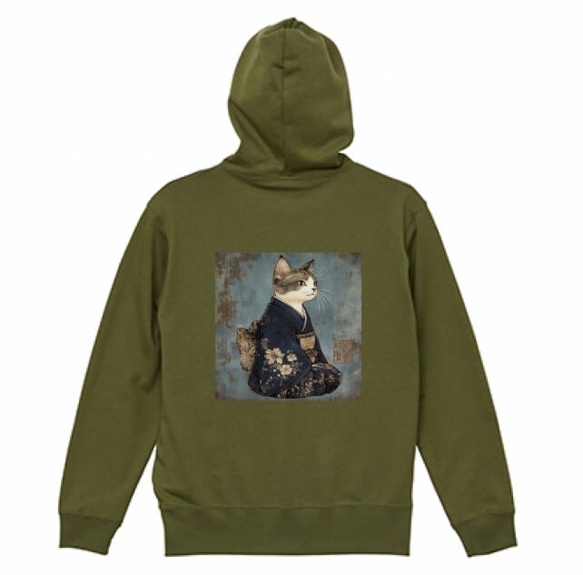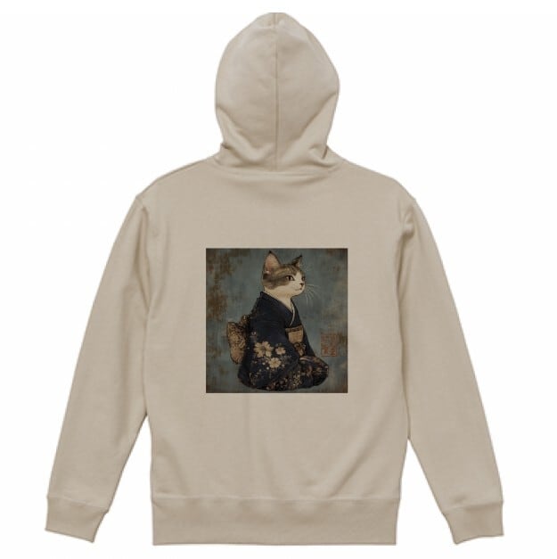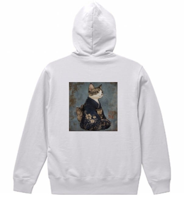 「気高き和猫 肖像画」プルオーバーパーカー/"Portrait of a Noble Japanese Cat" pullover hoodie