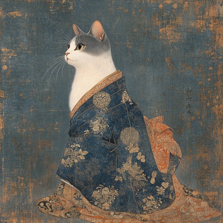 モダンアートのような色とりどりの着物を纏江戸猫。