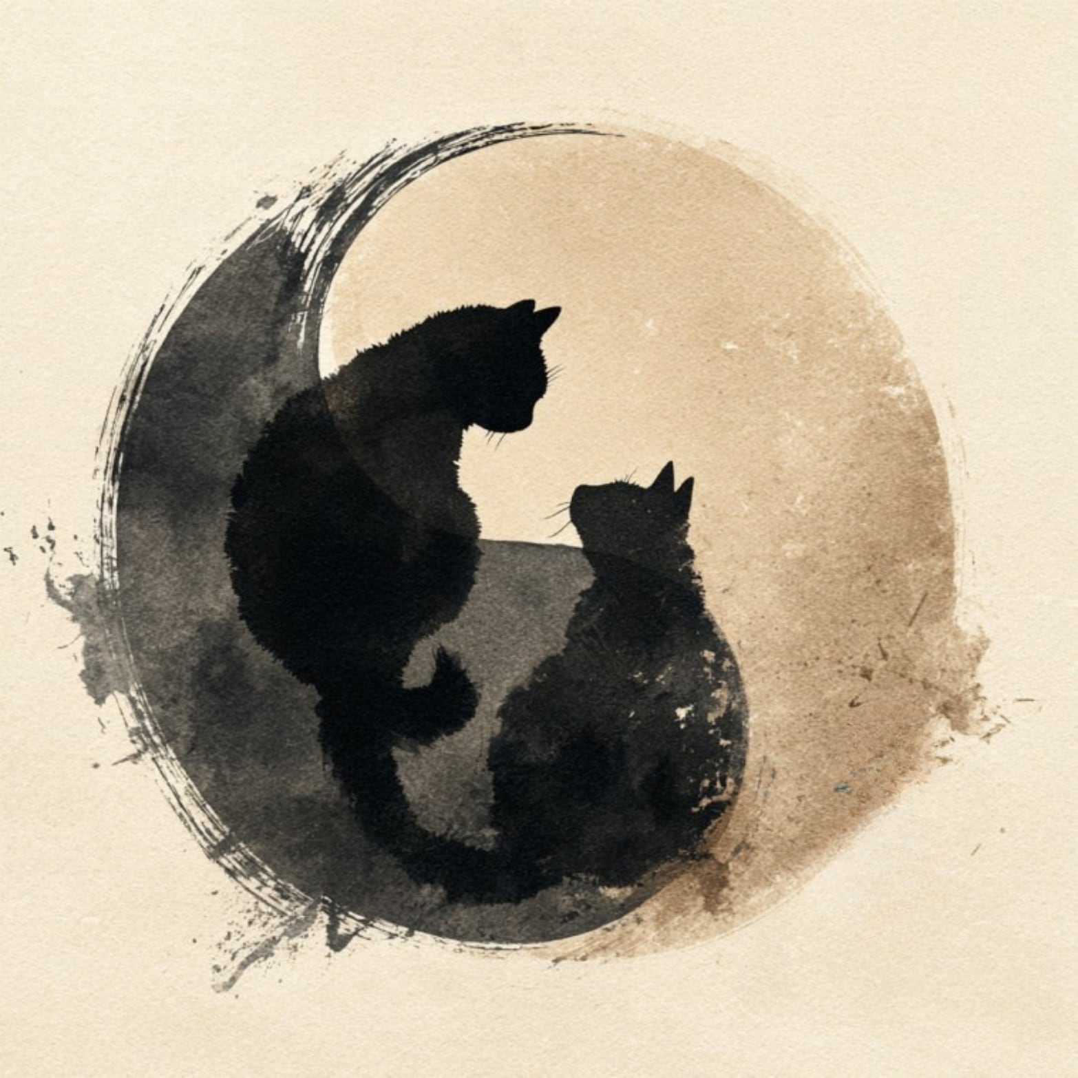 背景は一筆円のような円相(えんそう)で描かれ、禅の思想や調和を感じさせる佇まいに。