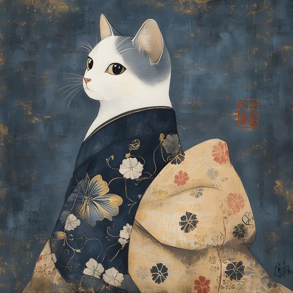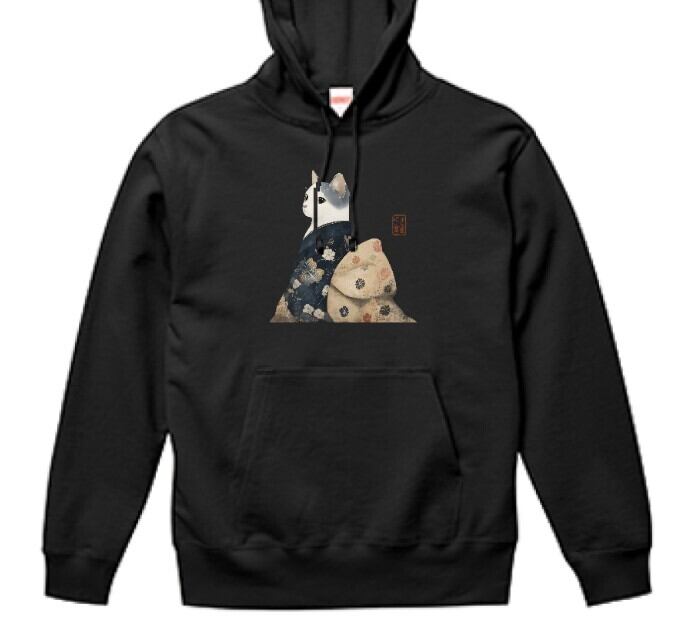 The elegant cat in a furisode kimono adds a touch of Japanese style to the hoodie, creating a piece that combines serenity with elegance.