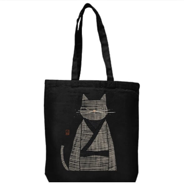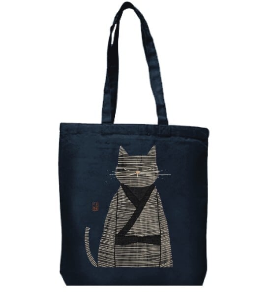 This Japanese-style tote bag features a graceful cat in a kimono. The calming indigo canvas creates a refined, retro feel. It's a perfect item for everyday use or as a gift.