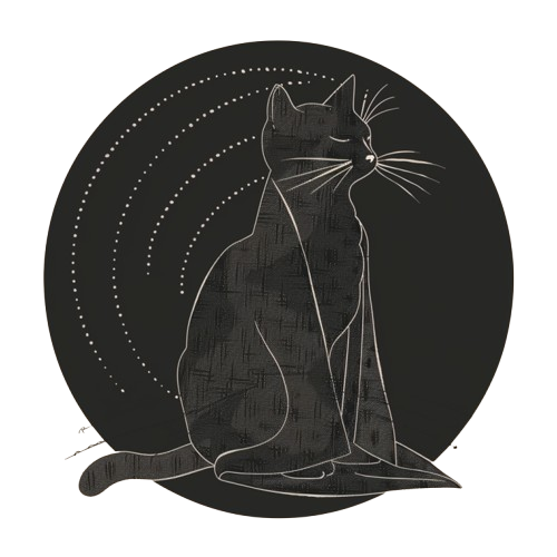 静かに背を向ける猫と、広がる同心円が描く“禅と宇宙”。
