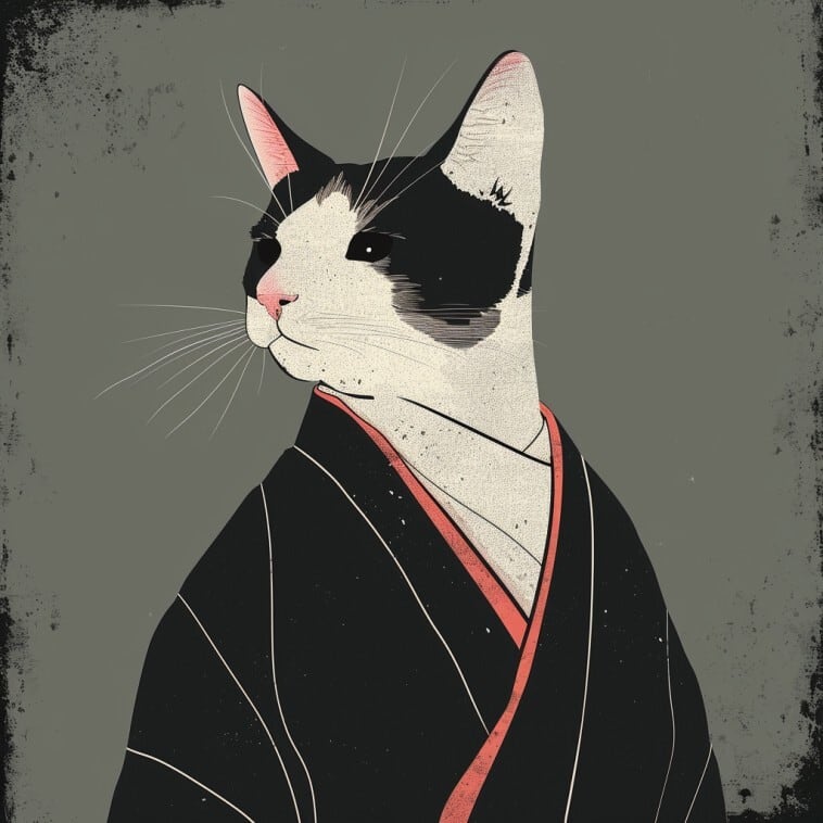The silhouette of the haori coat and the red trim create an exquisite sense of chic and elegance. The world of Edo cats is on your back.