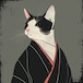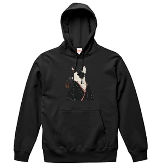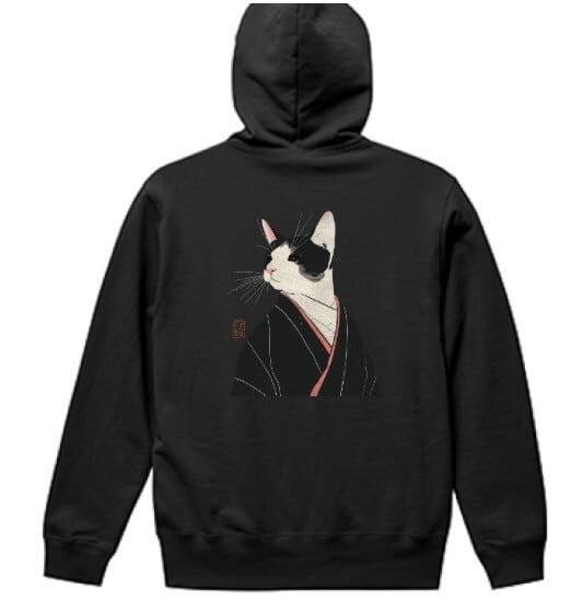 「凛と見返る黒白猫和装」プルオーバーパーカー/"Black and White Cat Looking Back with Dignity in Japanese Clothing" Pullover Hoodie
