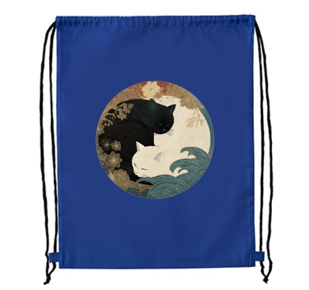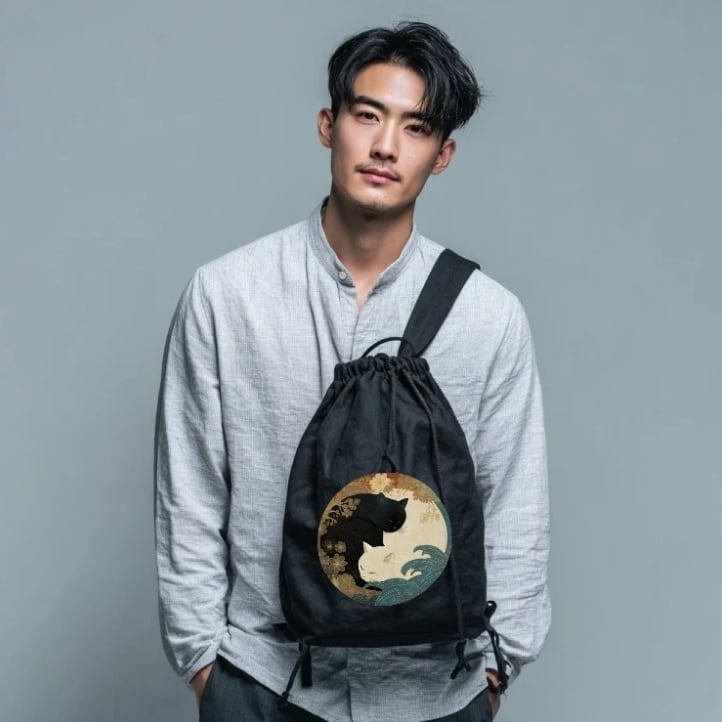 「陰陽花月の猫 – 江戸の調べを背に纏う」ナップサック/"Yin Yang Flower Moon Cat – Wearing the Melody of Edo on Your Back" Knapsack
