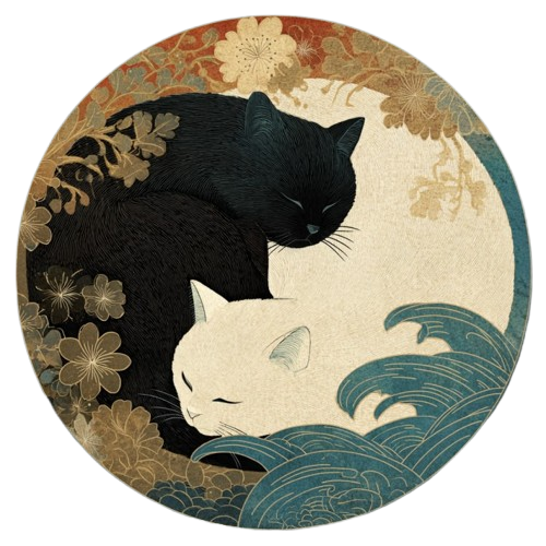Yin and yang, moon and waves, flowers and cats -A combination of tranquility and elegance, this piece features Japanese yin and yang art on your back.