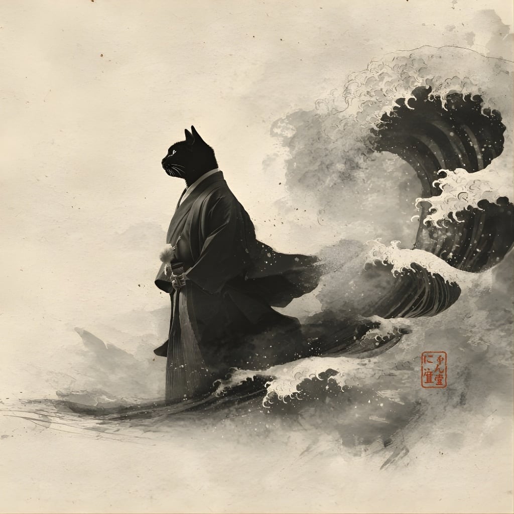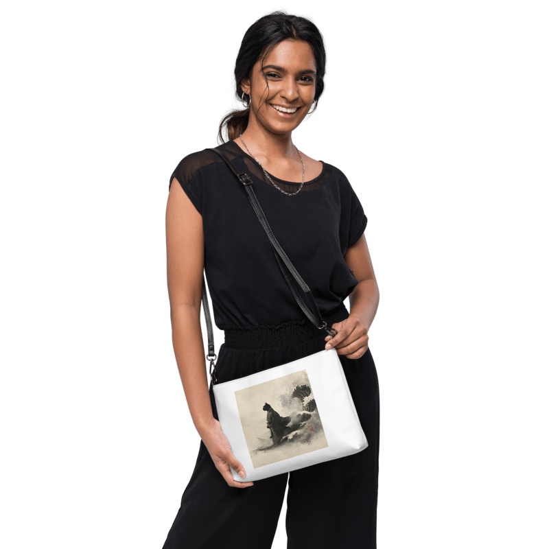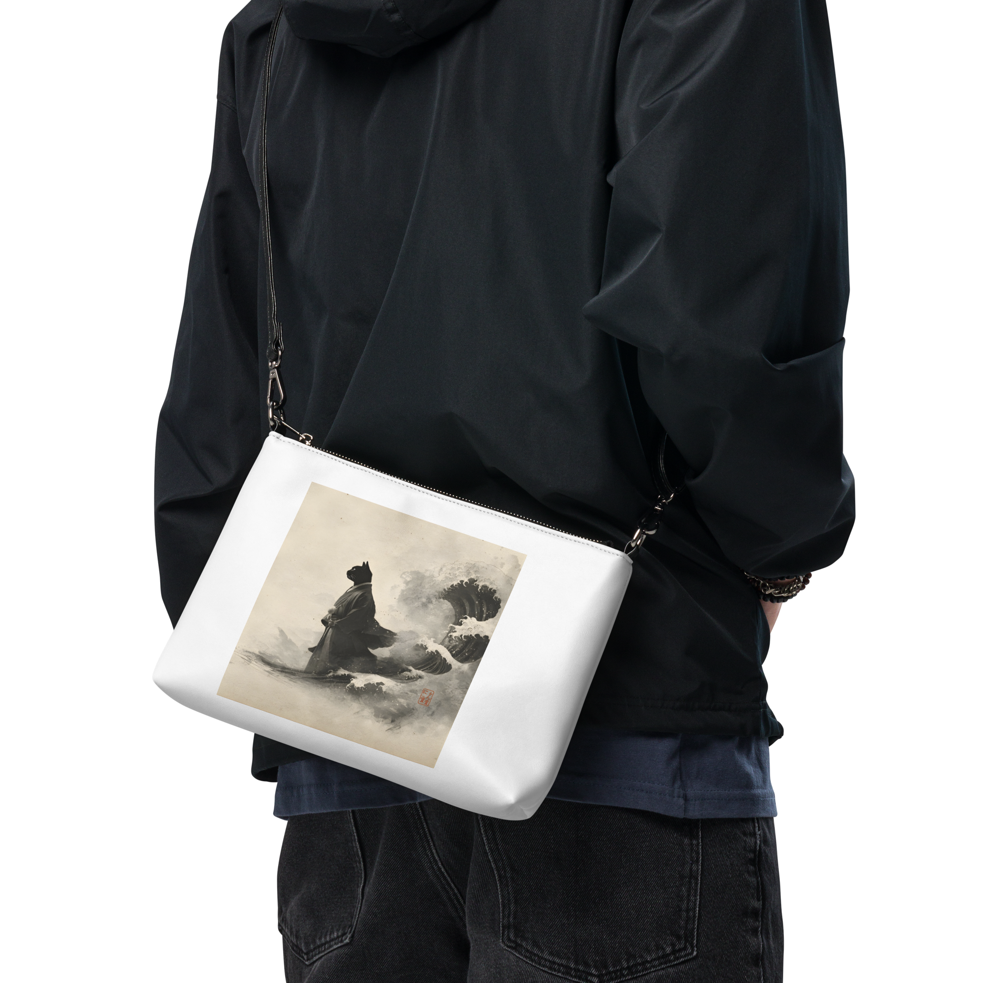 「荒波を越える、黒き江戸猫」クロスボディバッグ ショルダーバッグ/"A Black Edo Cat Crossing the Rough Seas" Crossbody Bag/Shoulder Bag