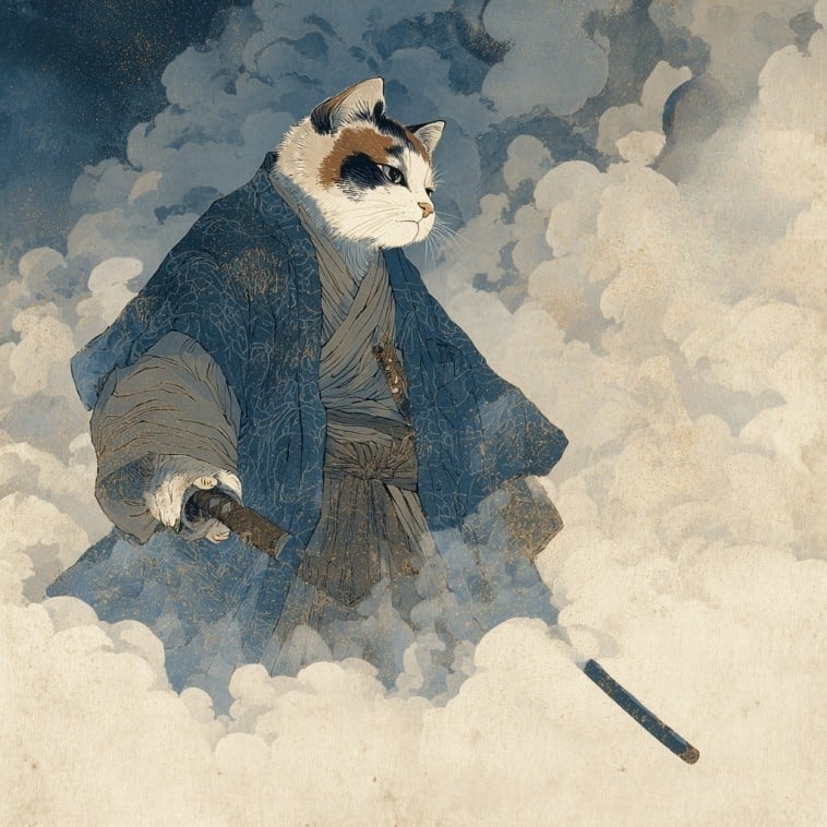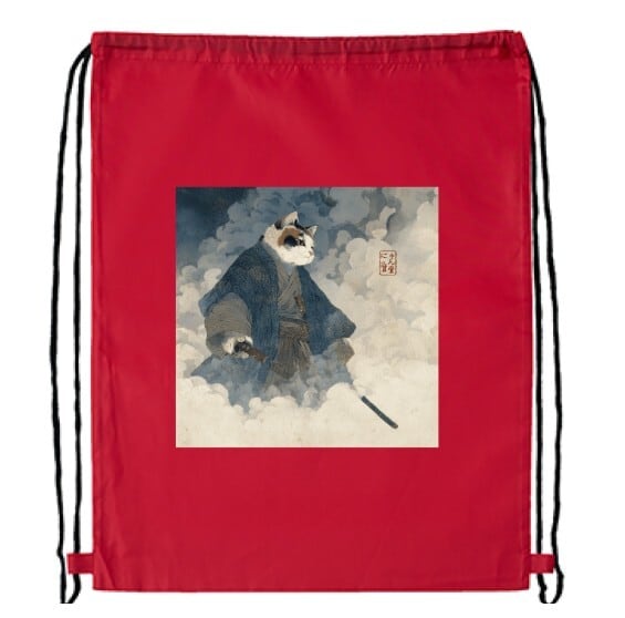 「霧を裂く、武猫(ぶびょう)」ナップサック/"The Mist-Splitting Warrior Cat" Knapsack