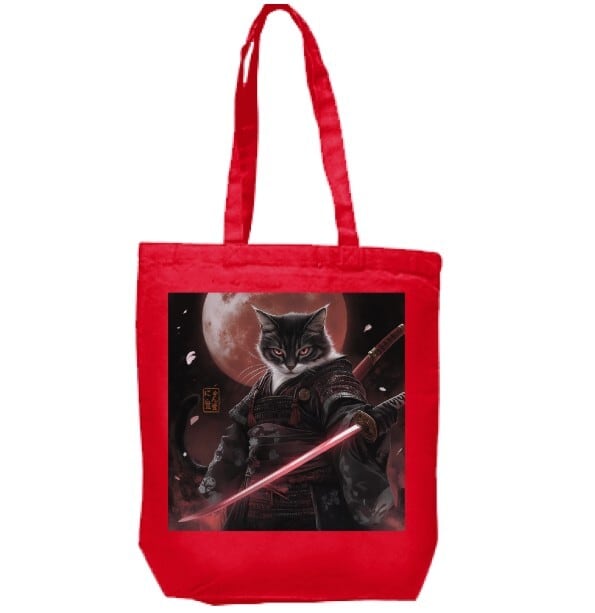 「紅月に斬る、影武猫(かげぶびょう)」 キャンパス布バッグ