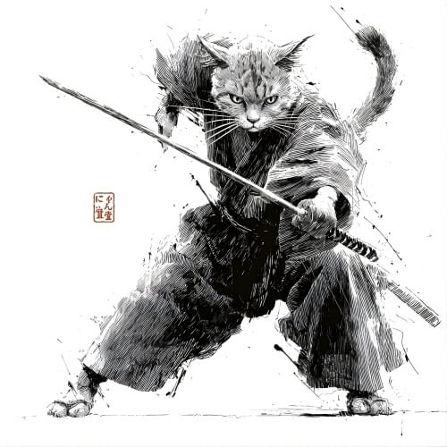 アートを持ち歩こう。「斬り結ぶ猫 ― 江戸墨線アート」布トート A4(M)