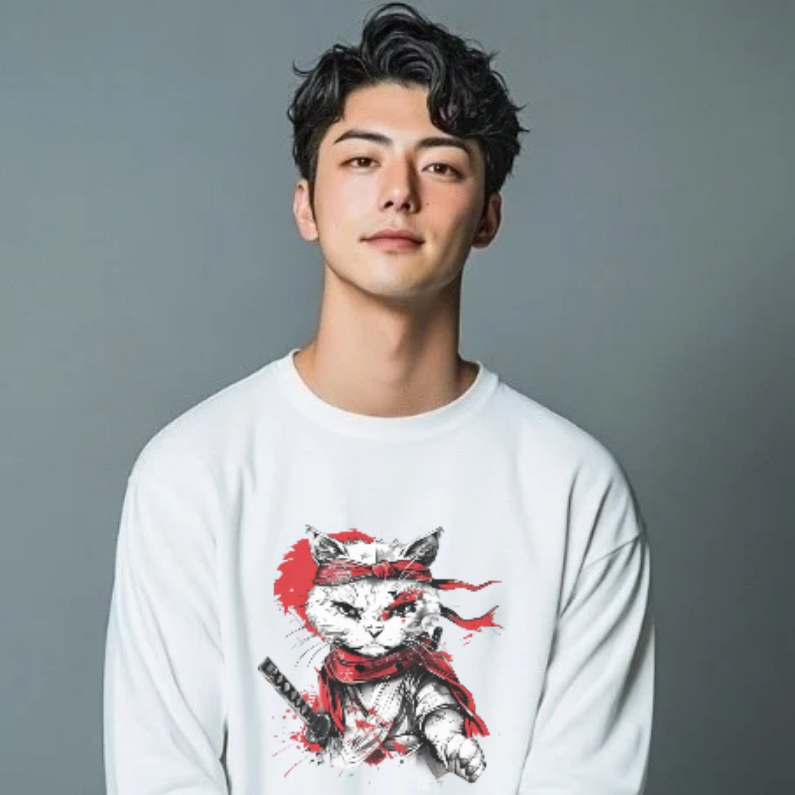 「刃猫・紅の一閃」長袖Tシャツ